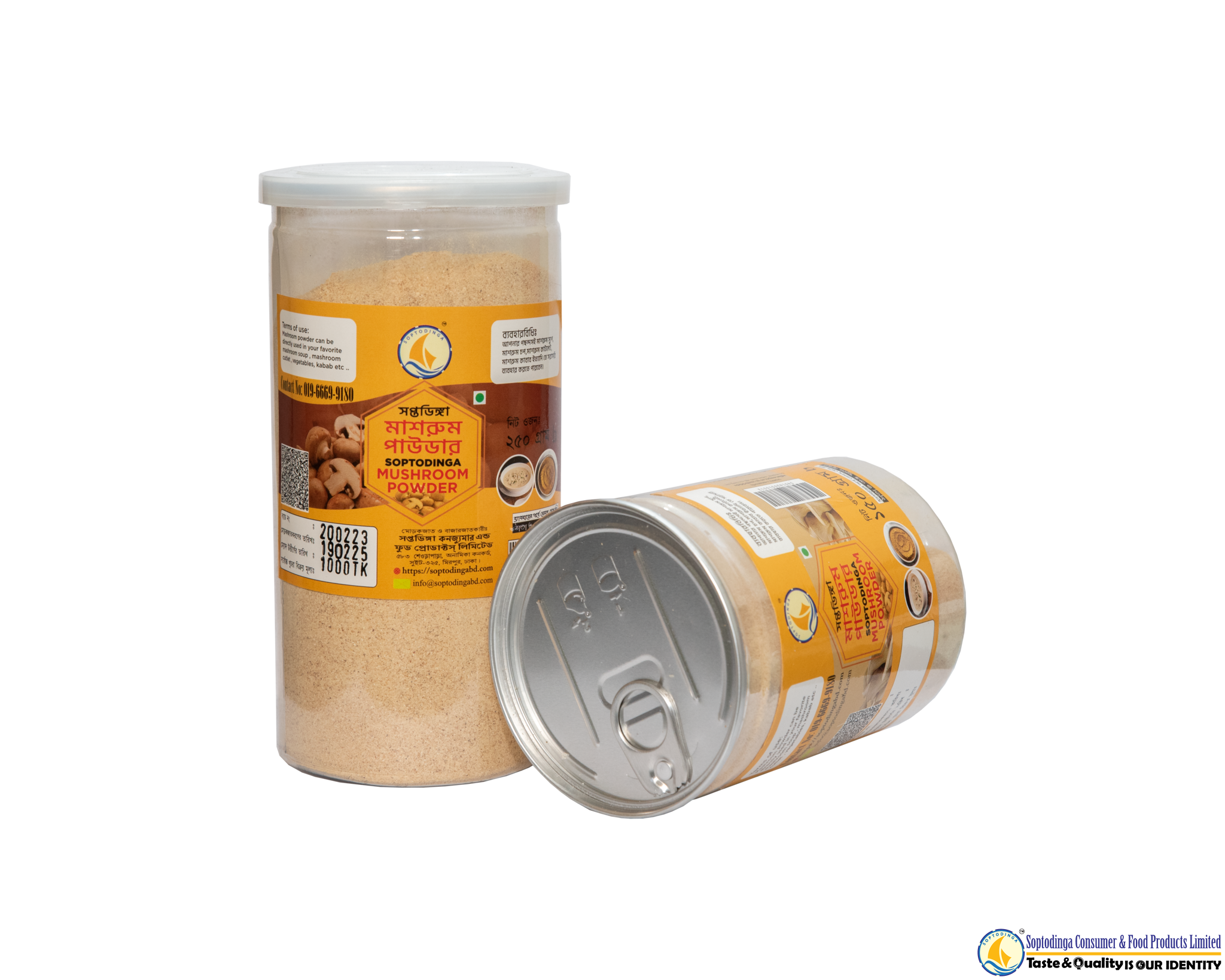 পাউডার মাশরুম পুষ্টিমানঃ প্রোটিন — ২৬.১% লিপিড—২.৭% কার্বোহাইড্রেট–৩৯.৮% ফাইভার–২২.৯% আঁশ—৮.৫% পাউডার মাশরুম খাওয়ার পদ্ধতি: চা,কফি,হরলিক্স ও দুধের সাথে এবং যে কোন ভর্তা