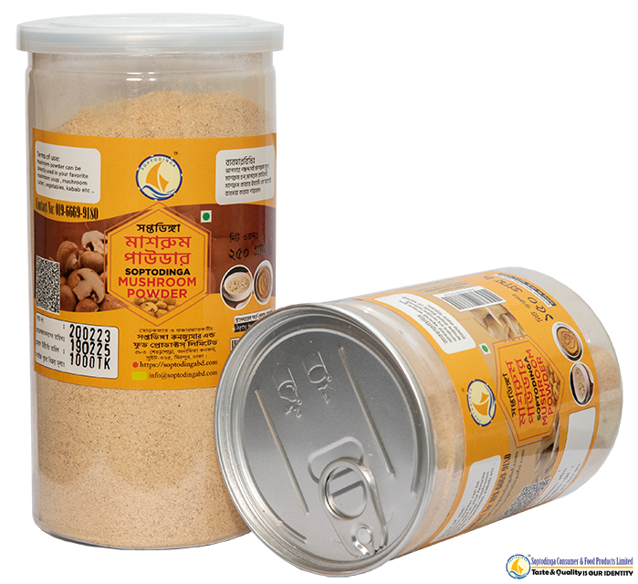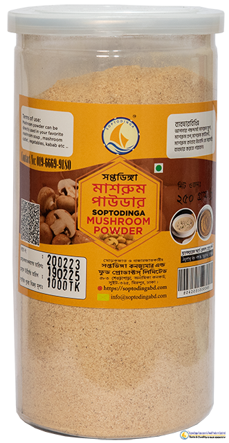 পাউডার মাশরুম পুষ্টিমানঃ প্রোটিন — ২৬.১% লিপিড—২.৭% কার্বোহাইড্রেট–৩৯.৮% ফাইভার–২২.৯% আঁশ—৮.৫% পাউডার মাশরুম খাওয়ার পদ্ধতি: চা,কফি,হরলিক্স ও দুধের সাথে এবং যে কোন ভর্তা