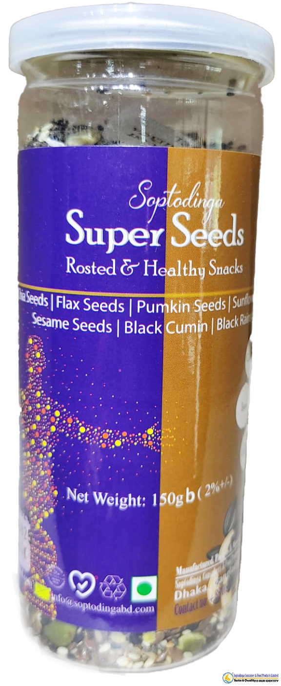 ১.চিয়া সিড ২.ফ্লেক্স সিড ৩.মিষ্টি কুমড়ার বীজ ৪.সূর্যমুখীর বীজ ৫.সাদাতিল ৬.কালো জিরা ৭.কালো কিসমিস